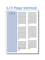 One-Third (1/3) Page Vertical, Full-color, Display Advertisement in your choice of selected monthly runs.